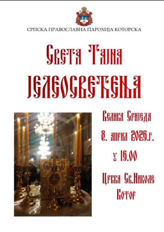 Света тајна јелеосвећења – Црква Св. Николе Котор (Стари град) Велика сриједа у 16...