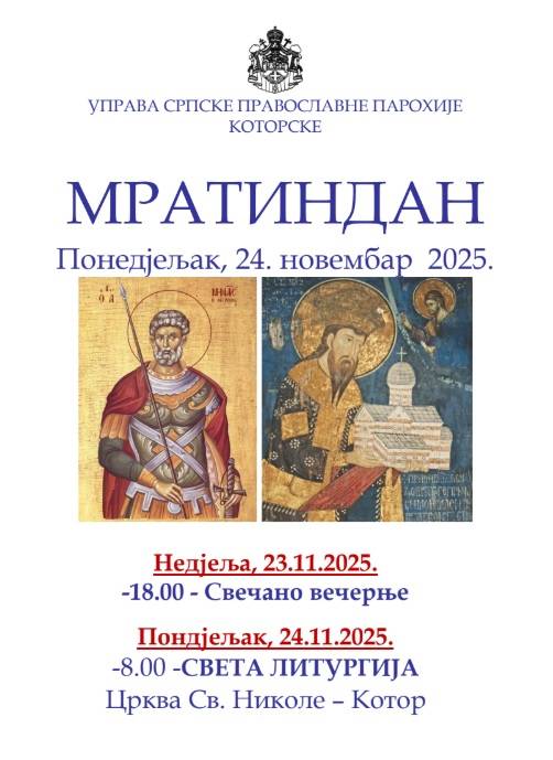 Sunday, 23.11.2025.-18.00 - Solemn VespersMonday, 24.11.2025.-8.00 - HOLY...