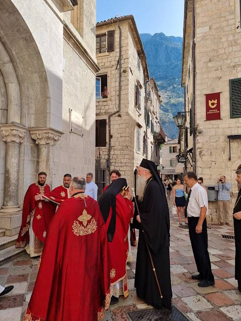 On the city's waterfront, Metropolitan Joaniki was previously welcomed by the archpriest of Kotor-Tivat, parish priest of Kotor, archpriest Nemanja Krivokapić and members of the Board of Directors of the Serbian Orthodox Church Municipality of Kotor with president Miša Sekulović.