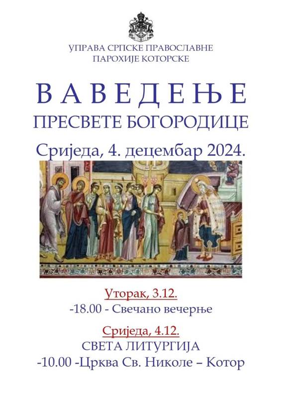 VIDOVDAN LITURGIJSKI PROSLAVLJEN U KOTORU
