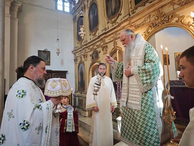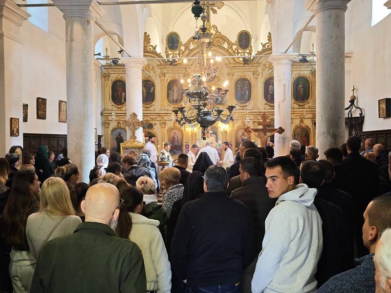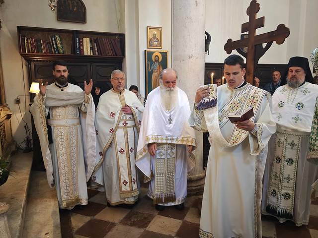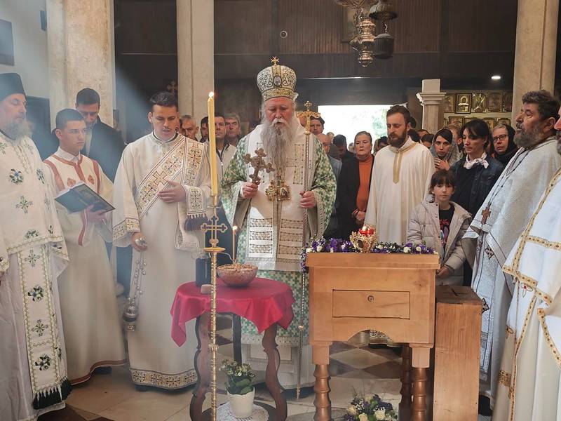 Јеромонах Макарије, игуман манастира Савина, вјернима је бесједио након прочитаног одјељка из Јеванђеља.