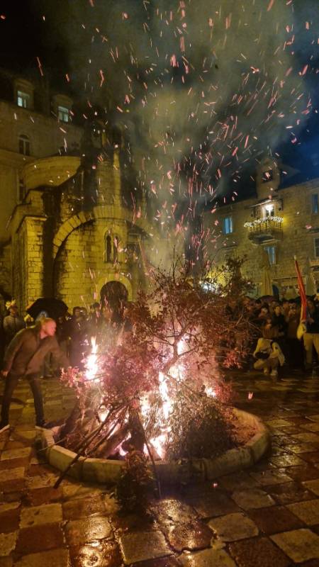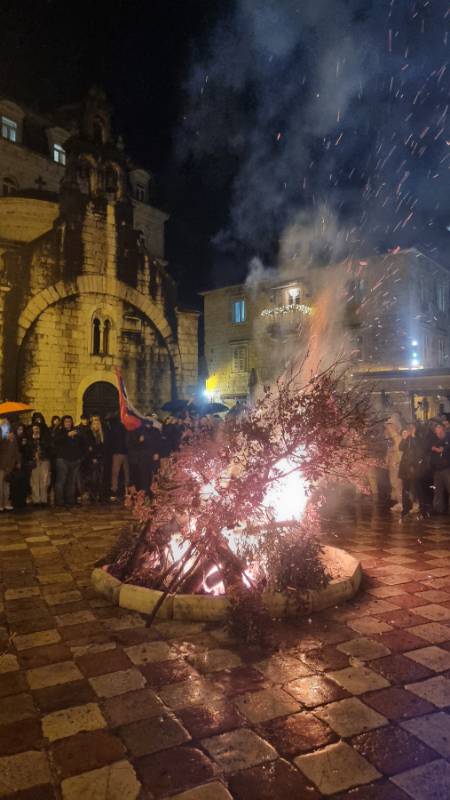 Сусрет бадњака из Грбља и Ораховца синоћ је уприличен на градској риви у Котору. Упркос киши и неповољним временским приликама, велики број вјерника окупио се на градској риви, гдје су се бадњаци пристигли из Грбља и Ораховца симболично сусрели.