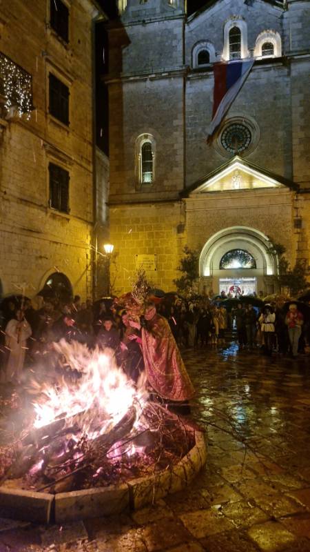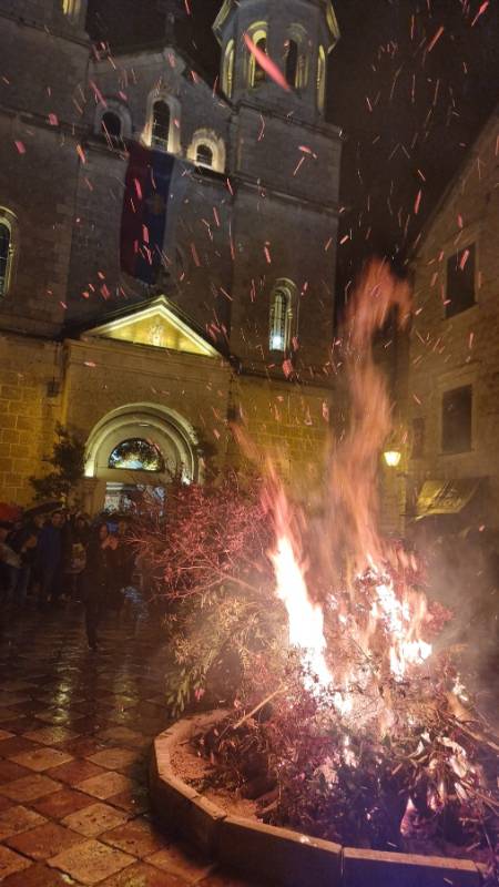 Након свечаног налагања бадњака обратио се архијерејски намјесник которско-тиватски и парох которски, протојереј-ставрофор Немања Кривокапић.