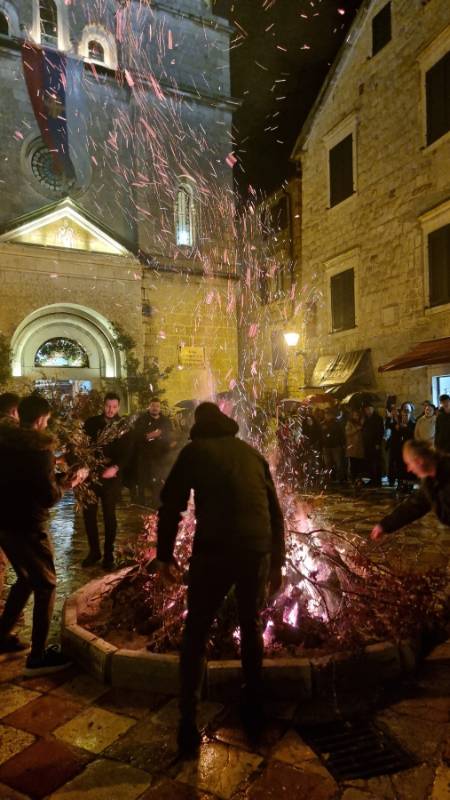 На градској риви бадњаке су дочекали архијерејски намјесник которско-тиватски и парох которски, протојереј-ставрофор Немања Кривокапић, заједно са свештенством, упутивши традиционални поздрав: „Добро вече, на здравље вам Бадње вече!“