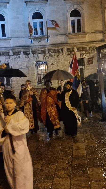 Након сусрета на риви, формирана је свечана поворка која је прошла улицама и трговима Старог града до Цркве Светог Николе. У поворци су, поред протојереја-ставрофора Немање Кривокапића, учествовали и протојереј-ставрофор Миленко Јекић, протојереј Ненад Калем, јереј Војислав Мијатовић, јереј Јован Васић и јереј Лазар Крстић, заједно са бројним вјерницима.