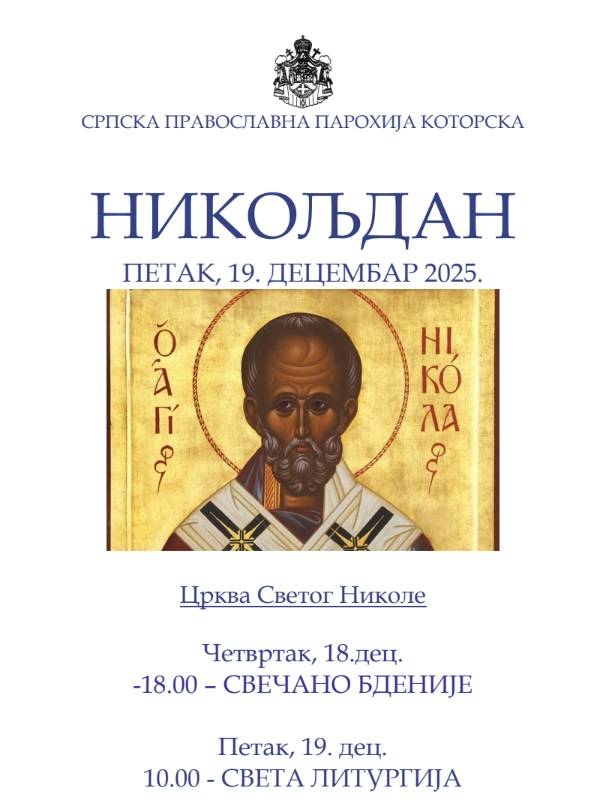 Црква Светог Николе Четвртак, 18.дец. -18.00 – СВЕЧАНО БДЕНИЈЕ Петак, 19....
