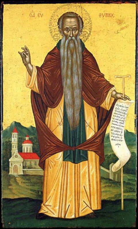 Рођен је у јерменском граду Мелетини, код реке Еуфрат, око 377. године, од знаменитих родитеља. Мајка Дионисија имала је небеско виђење о његовом рођењу. Подвизавао се од младости, прво у близини свог града, а потом у пустињи Фаре, између Јерусалима и Јерихона. Око њега се искупило пуно ученика, међу њима и будућих славних светитеља: Кириак Отшелник, Сава Освештани, Теоктист и други. Изгонио је демоне, лечио тешке болести, извео воду у пустињи, умножио хлеб, прорицао. Говорио је: „Што је со хлебу, то је љубав осталим врлинама“. У близини његове пећине, још за живота му никла је огромна лавра. Упокојио се 473. године. Седми дан по смрти јавио се свом ученику Доментијану, сав светао.