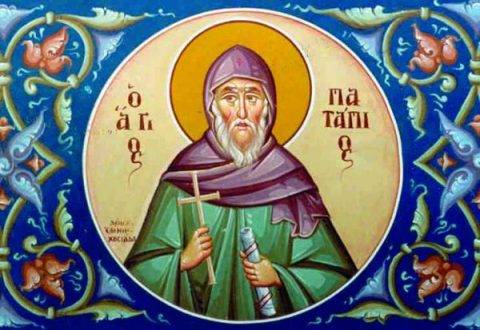 Рођен је у Тиви Мисирској, од родитеља хришћана. У раној младости се удаљио у Мисирску пустињу. Када се прочу, почеше да му долазе људи тражећи утеху. Уплашен од људске славе, Патапије побеже из пустиње у – Цариград. Размишљао је да ће се лакше сакрити од људи у градској вреви. Направио себи колибу код цркве Влахерне. Али, светлост се не да сакрити. Неки дечак, слеп од рођења, вођен Промислом Божијим, дође код Патапија и замоли га да се помоли Богу да би прогледао. Светитељ се смилова на њега, помоли се Богу, и он прогледа. То се чудо прочу по целој престоници, те људи наврнуше к њему. И кроз Светог Патапија пројавише се многа чуда Божија. Упокојио се у Господу у дубокој старости, у VII веку.