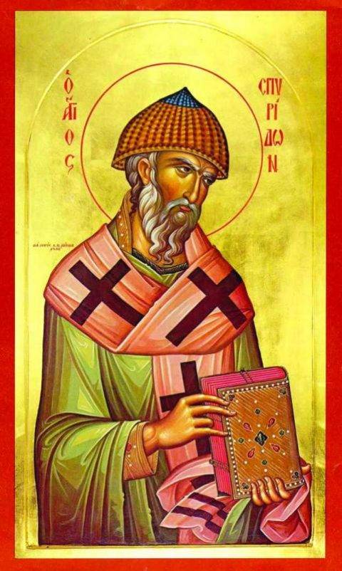 Рођен на Кипру. У младости се оженио и имао је децу. Када му се жена упокојила, предао се служби Богу. Због свог особитог благочешћа, изабран је за епископа у граду Тримитунту на Кипру. Али он ни као епископ није променио свој начин живљења: обрађивао је земљу и сам се трудио око своје стоке. На себе је врло мало трошио и већи дио стеченог делио је сиромасима. Бог га је обдарио великом силом: више мртваца је васкрсао, цара Констанса је излечио од тешке болести, прозирао је у будућност, гледао у слушао ангеле… На I Васељенском Сабору својим простим али јасним исповедањем вере и чудесима поврати многе јеретике у Православље. Упокојио се у Господу 348. године. Чудотворне мошти су му на Крфу.