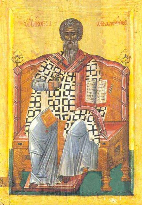 Један од Седамдесеторице, син Јосифа, обручника Пресвете Деве, назван Брат Господњи. Чим је чуо Христову науку, почео је по њој да живи. Кажу да је живео само о хлебу и води. Девственик до краја живота. Ноћи је проводио у молитви Богу. Био је епископ у Јерусалиму 30 година. По указању Господа, саставио је прву Литургију. И сами неверни Јевреји звали су га Јаков Праведни. Када дође за првосвештеника Анан, са јеврејским старешинама му на празник Пасхе рече да се попне на кров и говори против Христа. Он се попе и поче говорити о Христу, па га гурнуше са крова. Тада приђе један човек и удари га у главу тако да му је просуо мозак. Светом Јакову је био 63 године када је пострадао за Господа.