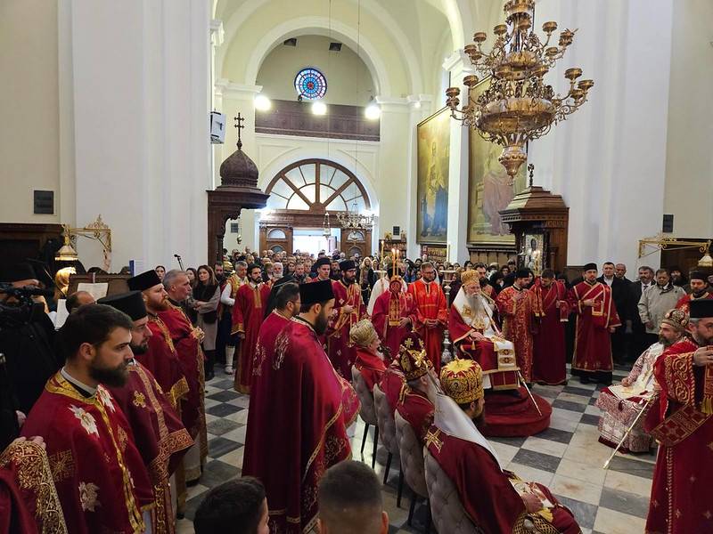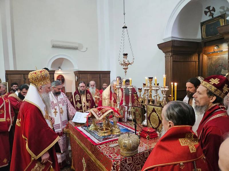 Високопреосвећена господа митрополити црногорско-приморски г. Јоаникије, милешевски г. Атанасије, будимљанско-никшићки г. Методије, захумско-херцеговачки г. Димитрије и преосвећена господа епископи буеносајрески и јужно-централноамерички и администратор Митрополије загребачко-љубљанске г. Кирило, дремвитски г. Давид, пакрачко-славонски г. Јован и диоклијски г. Пајсије данас су служили Свету службу Божију, којом је началствовао Митрополит Јоаникије.