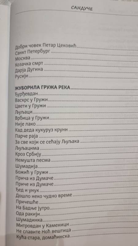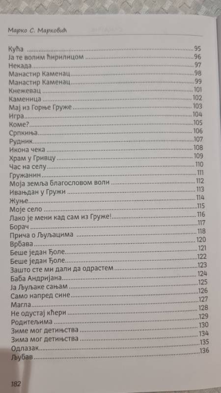 Управо тако и пјесник приступа својој поезији као отварању једног унутрашњег његовога искуства и простора испуњеног сликама живота. Кроз пјесме ове збирке провлаче се мотиви д‌јетинства, породице, завичаја и ратова који су као неумитни пратилац нашега народа кроз вријеме за свагда обиљежили завичајне пјесникове просторе. Пјесник се враћа у прошлост, не да би у њој остао, већ да би на тај начин искуствено боље разумио садашњост и за будућност се на вријеме спремио. Лирско Марковићево Сандуче и у њему д‌једове опоруке и аманети да је имање светиња која се не продаје.