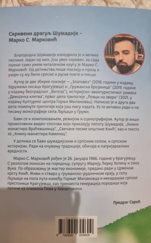 Пјесник Марко С. Марковић, рођен је 26. јануара 1986. године у Крагујевцу. Његова књижевност, по многим мишљењима, није само умјетност већ мисија. Стиховима враћа достојанство српском селу, огњишту и аманету предака, док збирка поезије „Сандуче“ опомиње да се не заборавља и не распродаје д‌једовина. Каже да му је велика част што збирку представља у Котору.