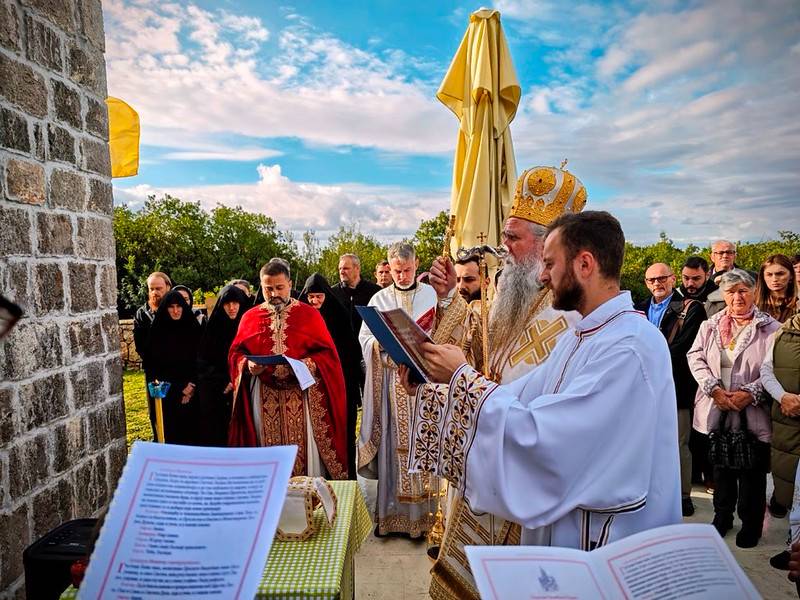 Његово високопреосвештенство Архиепископ цетињски и Митрополит црногорско-приморски г. Јоаникије данас, 9. новембра 2025. љета Господњег, када се молитвено сјећамо Светог мученика Нестора, освештао је Цркву Св. Сергија и Вакха у селу Вишњева – Доњи Грбаљ, и у њој са свештенством и вјерним народом служио прву Свету литургију.