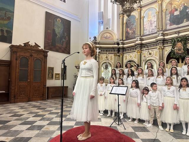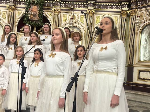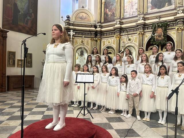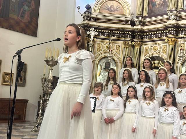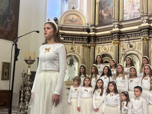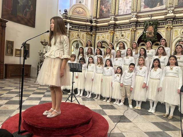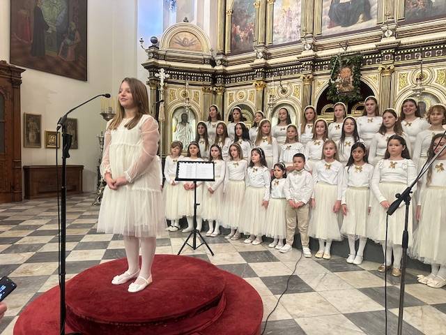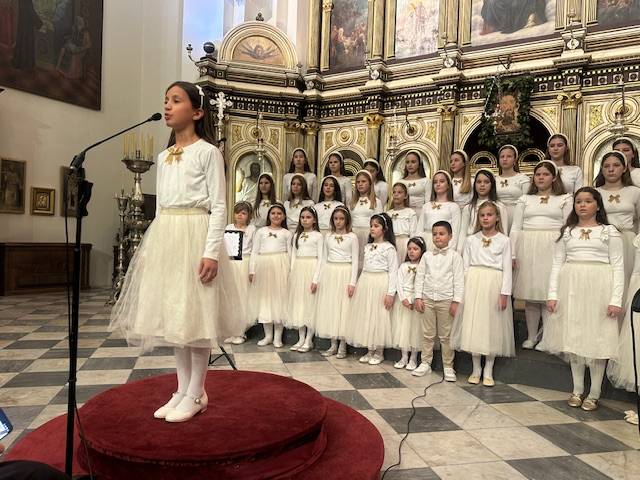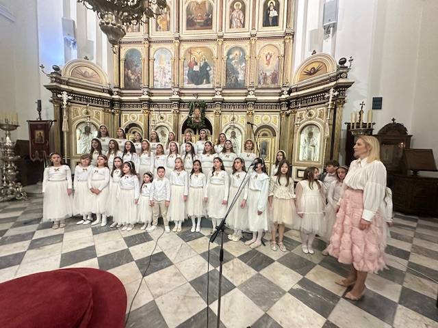 Хор је отпјевао и пјесме “Хајде да ширимо љубув”, Милешевски анђели” уз солискињу Даницу Матановић, потом и которску светосавску химну “О српска млада невина чеда”.