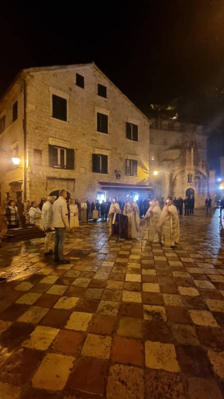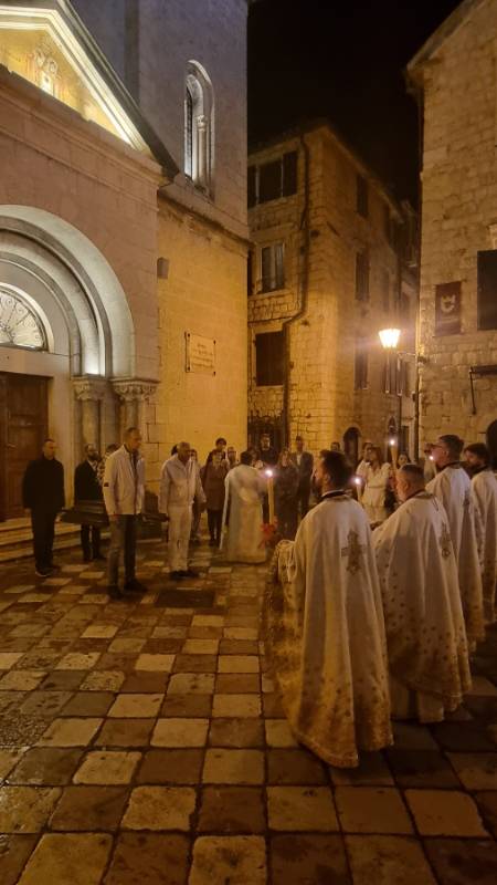 Јутрењем, а затим и Светом литургијом у Цркви Св. Николе у Старом граду, данас је почела прослава Васкрса у храмовима Српске православне црквене општине Котор.