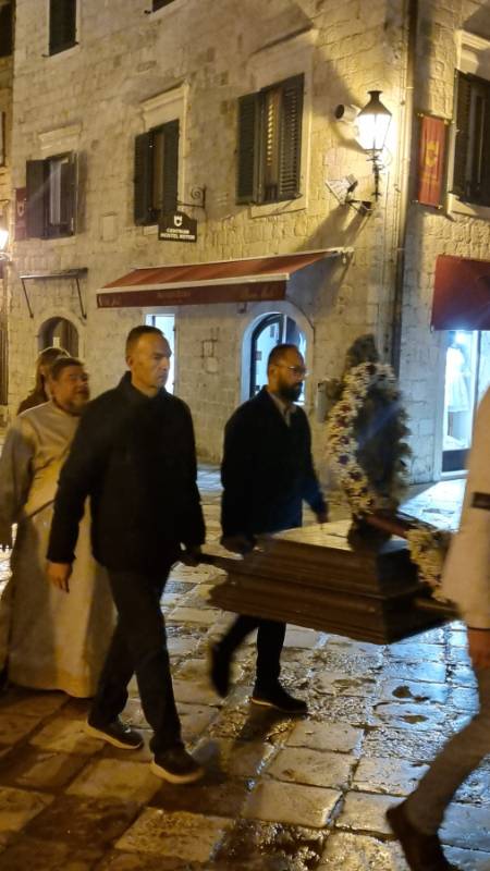 Служио је архијерејски намјесник которско-тиватски, парох которски, протојереј – ставрофор Немања Кривокапић, уз саслужење протојереја – ставрофора Миленка Јекића, протојереја Ненада Калема и јереја Војислава Мијатовића и пјевање хора Српског пјевачког друштва „Јединство“ (1839) Котор.