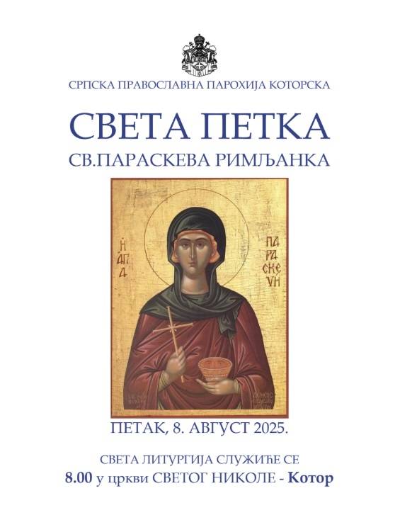 СВЕТА ПЕТКА - ПЕТАК, 8. АВГУСТ 2025.