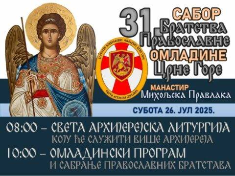 Тридесетпрви Сабор православне омладине Црне Горе, одржаће се и ове године 25....