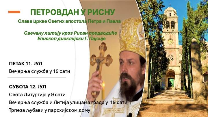 Црква Светих апостола Петра и Павла у Рисну прославиће на Петровдан храмовну...