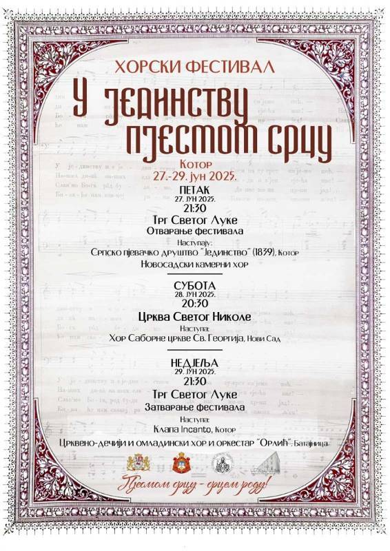 ХОРСКИ ФЕСТИВАЛ “У ЈЕДИНСТВУ ПЈЕСМОМ СРЦУ” ОД 27. ДО 29. ЈУНА
