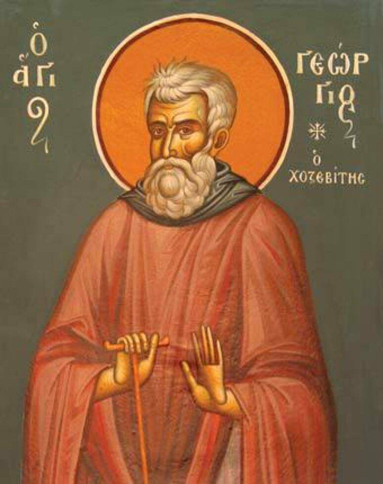 A native of Cyprus. His older brother, Iraklid, went to the Holy Land and became a monk at the Kalamon Monastery. After the death of his parents, George went to his brother, and the latter took him, at a young age, to the Chozev Monastery, where he became a monk. His elder brother struck him once, and his hand immediately withered, and George healed it. When this miracle became known, he fled to his brother Iraklid, with whom he lived in great asceticism. The two of them resurrected a small child. When, in deep old age, Iraklid passed away, George returned to the Chozev Monastery and settled in a nearby cell, where he lived in complete poverty, eating dried scraps from the monastery table every two or three days and praying to God constantly. He lived in the 7th century.