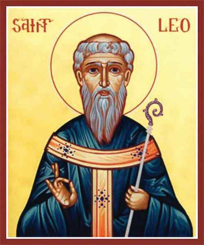 He was a bishop in Catania, under the volcanic mountain Etna. A great zealot for the faith and a man of mercy towards the needy. At that time in Catania, a certain magician Heliodorus was bewitching the people with various tricks and corrupting the youth. Once, during the service of God, he entered the temple and began his sorcery. Saint Leo tied him to the end of the omophorion and took him to the city square. He ordered a great fire to be lit there, and when it was blazing, he stood in the middle of the fire and dragged Heliodorus into it. Saint Leo remained unharmed in the fire, while Heliodorus was completely burned up. All those who had been fooled by the magician and who saw something divine in him were ashamed, and Saint Leo became famous throughout the empire as a great miracle worker. He reposed in the Lord in the 8th century. Myrrh flowed from his relics.