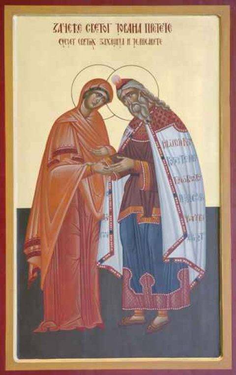 On this day, the mercy of God towards the pious and righteous parents of Saint John, the elder Zechariah and the old woman Elizabeth, who had prayed to God for a child all their lives, is celebrated; then the miracle of God's conception of Saint John in the womb of the elderly Elizabeth; and the wisdom of God in the economy of human salvation. God had especially great intentions with John: to be a prophet and Forerunner of Christ the Lord, the Savior of the world. Just as, through his angels, God announced the birth of Isaac from the childless Sarah, Samson from the childless Manoah and his wife, so he also announced the birth of John the Baptist from the childless Zechariah and Elizabeth. Truly, with God all things are possible. He created the world out of nothing, and Adam and Eve without any parents.