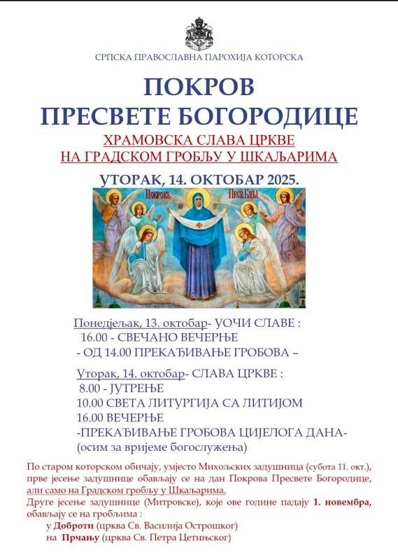 Calendar for October 14 The Intercession of the Most Holy Theotokos