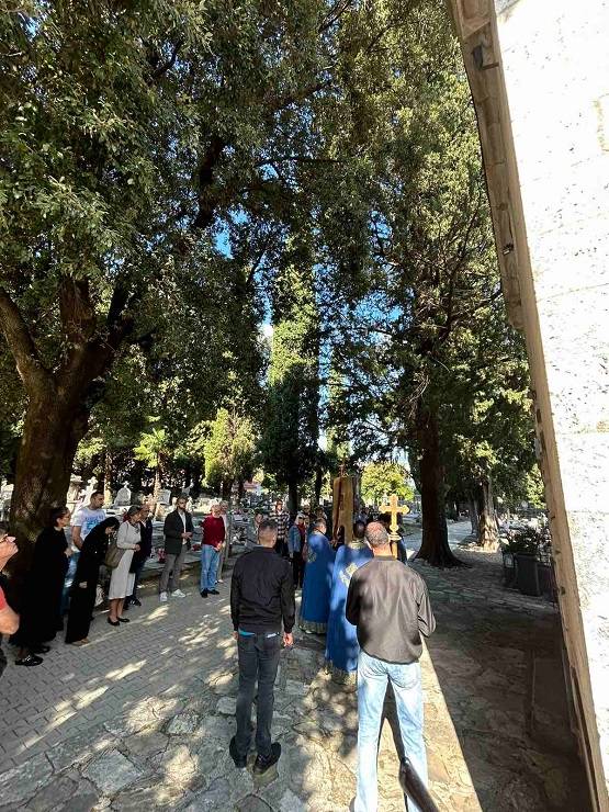 The Intercession of the Most Holy Theotokos, the temple slava of the church at the city cemetery in Škaljari, was liturgically celebrated today with Matins, and then with the Holy Liturgy with a procession and the fumigation of the graves.