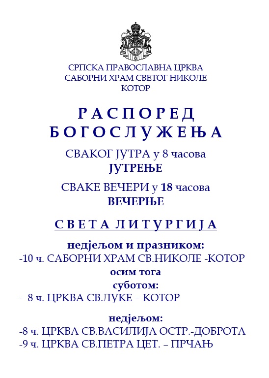 BOGOSLUŽENJA: U crkvi Sv. Luke u Kotoru:Četvrtak, 30.okt.18.00 – Svečano...