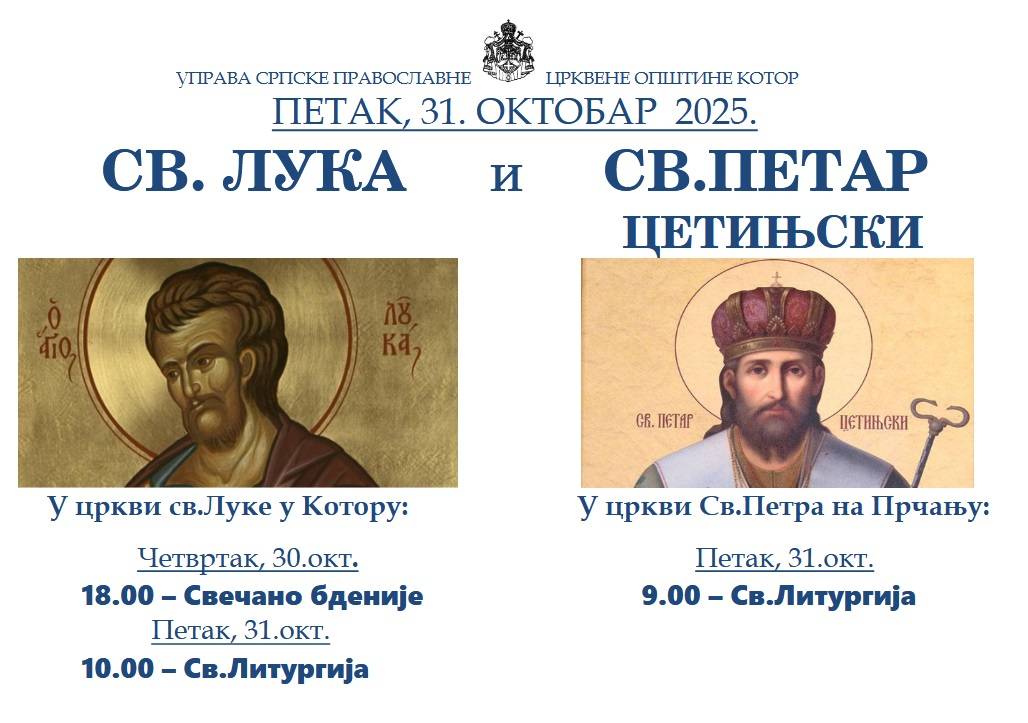 SV. LUKA I SV.PETAR CETINJSKI PETAK, 31. OKTOBAR 2025.