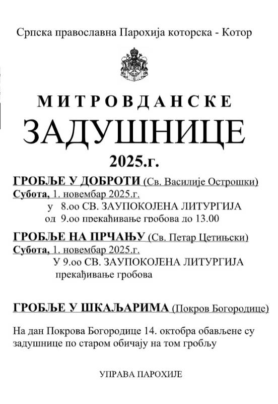 SV. LUKA I SV.PETAR CETINJSKI PETAK, 31. OKTOBAR 2025.