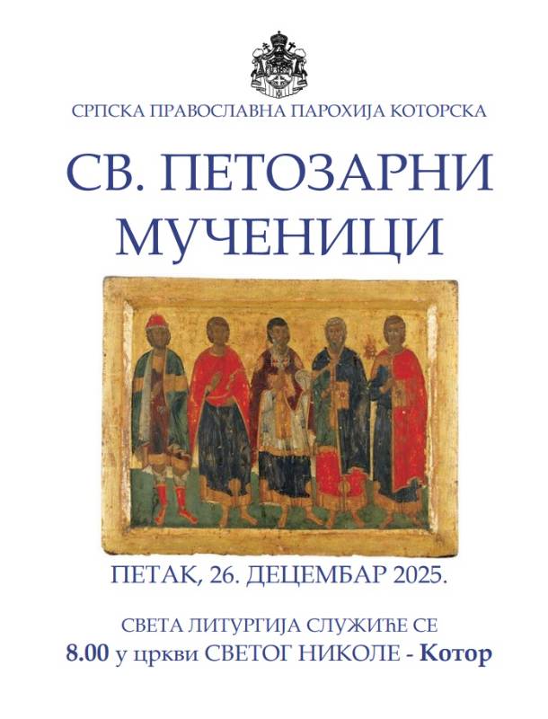 SV. PETOZARNI MUČENICI PETAK, 26. DECEMBAR 2025.